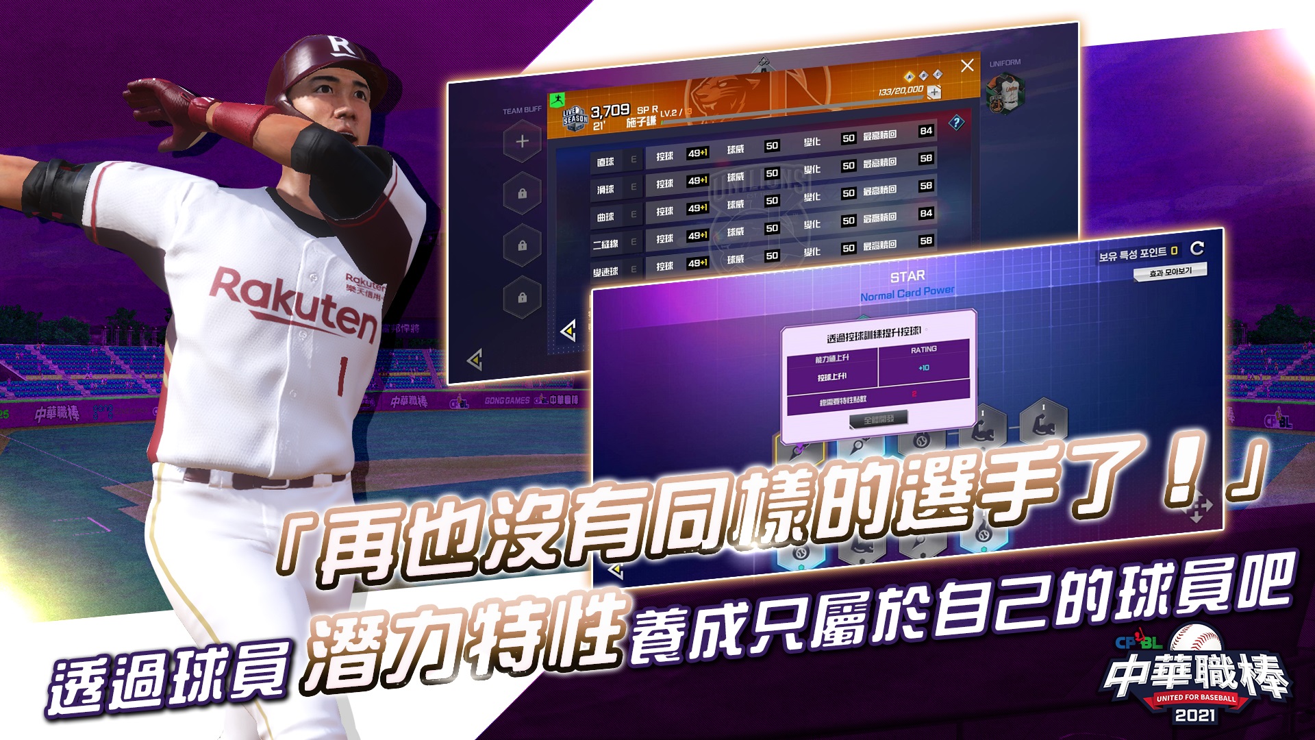 由「中華職業棒球大聯盟」(下稱中華職棒聯盟)同名授權、韓國遊戲公司GONGGAMES Corp.研發直營的擬真棒球手遊《CPBL中華職棒2021》,今(4)日正式於雙平台推出!遊戲事前登錄吸引超過32萬球迷粉絲參與,官方除邀請體育主播「吳昇府」及中職傳奇球星「謝長亨」為遊戲獨家配音,也公開「小男孩樂團」為《CPBL中華職棒2021》量身打造的專屬主題曲。歡慶遊戲上線,官方特別祭出多重好禮以及滿滿的活動內容,邀請玩家一起加入,燃燒你的棒球魂!